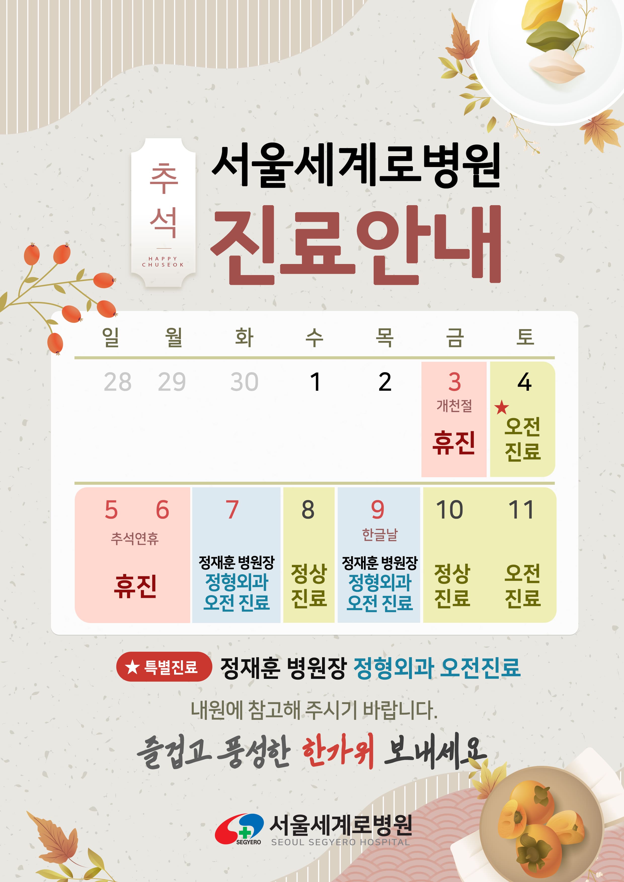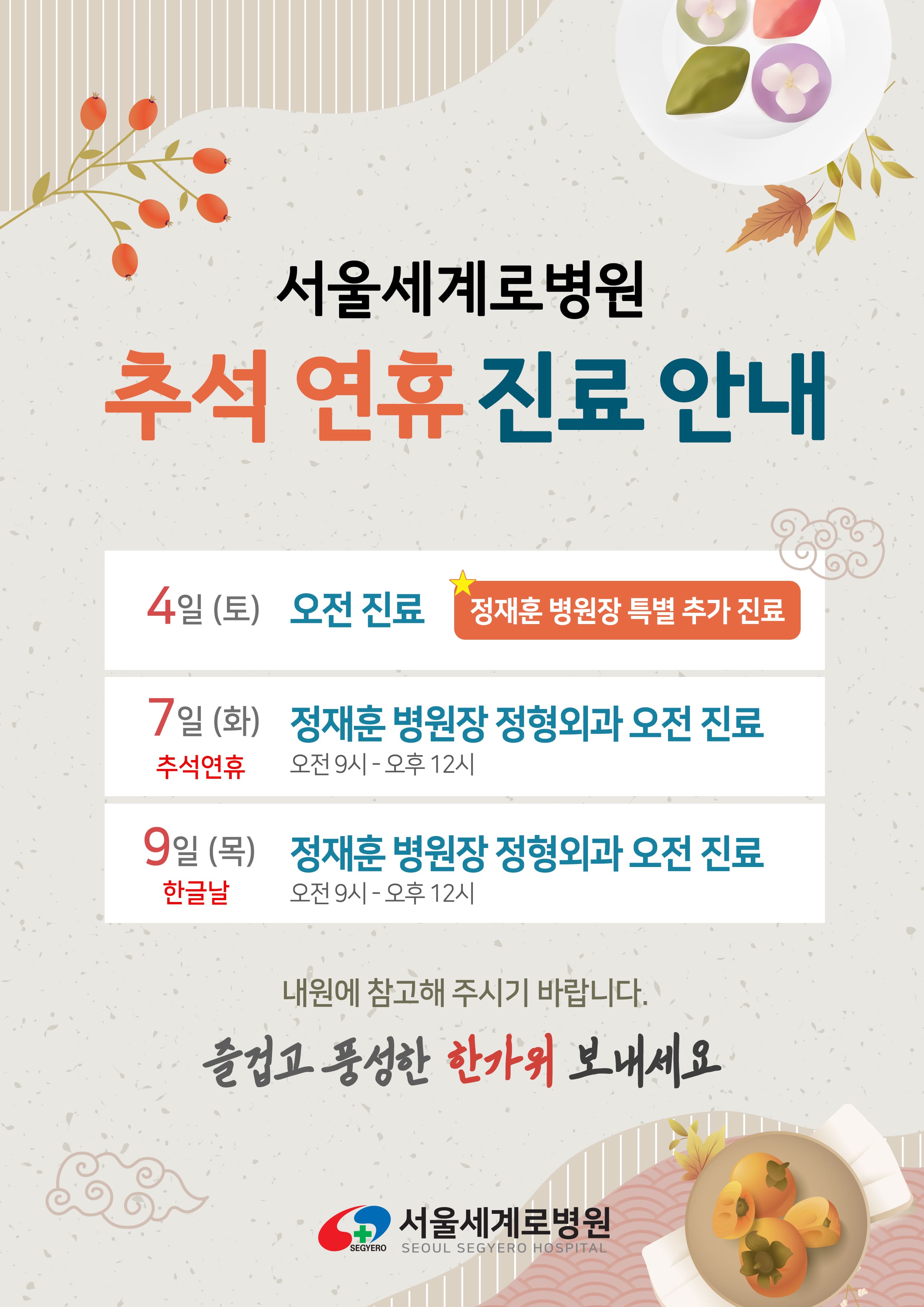 서울세계로병원 추석 연휴 진료 안내