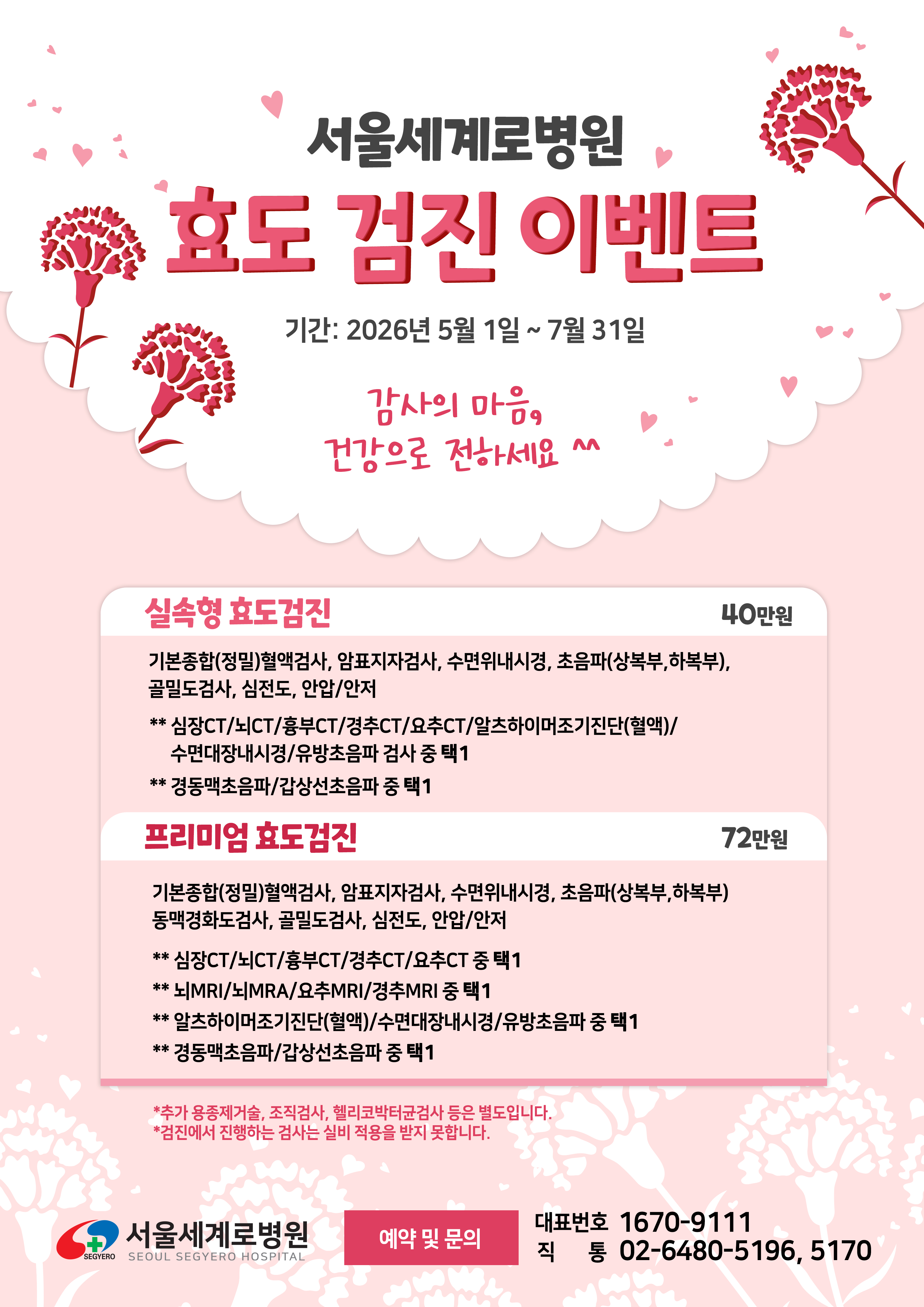 여러분의 성원에 힘입어 효도 검진 이벤트를 진행하니 많은 관심 부탁드립니다.